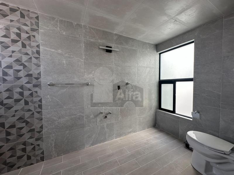 Planta alta: Recámara principal con vestidor y baño completo, dos recámaras secundarias con un baño completo compartido.