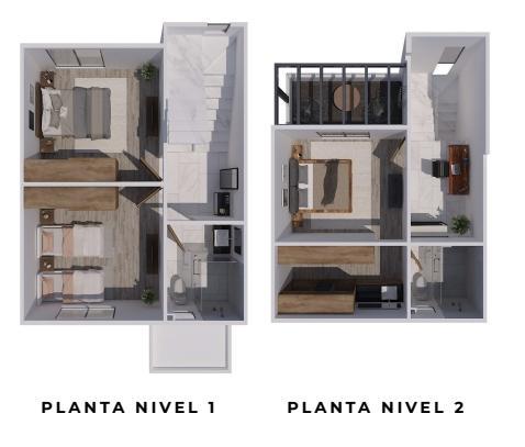 Tercer nivel: Recámara principal con vestidor, baño completo y terraza privada, ideal para disfrutar de mayor privacidad y confort.